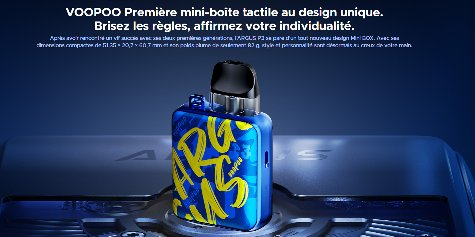 Descubre el Argus P3 de Voopoo, un pod revolucionario que transforma la experiencia de vapeo gracias a su diseño ultra-compacto estilo Mini Box, su ergonomía avanzada y sus tecnologías inteligentes. Más que una simple cigarrilla electrónica, el Argus P3 es un accesorio inteligente y elegante pensado para quienes buscan rendimiento y estilo.