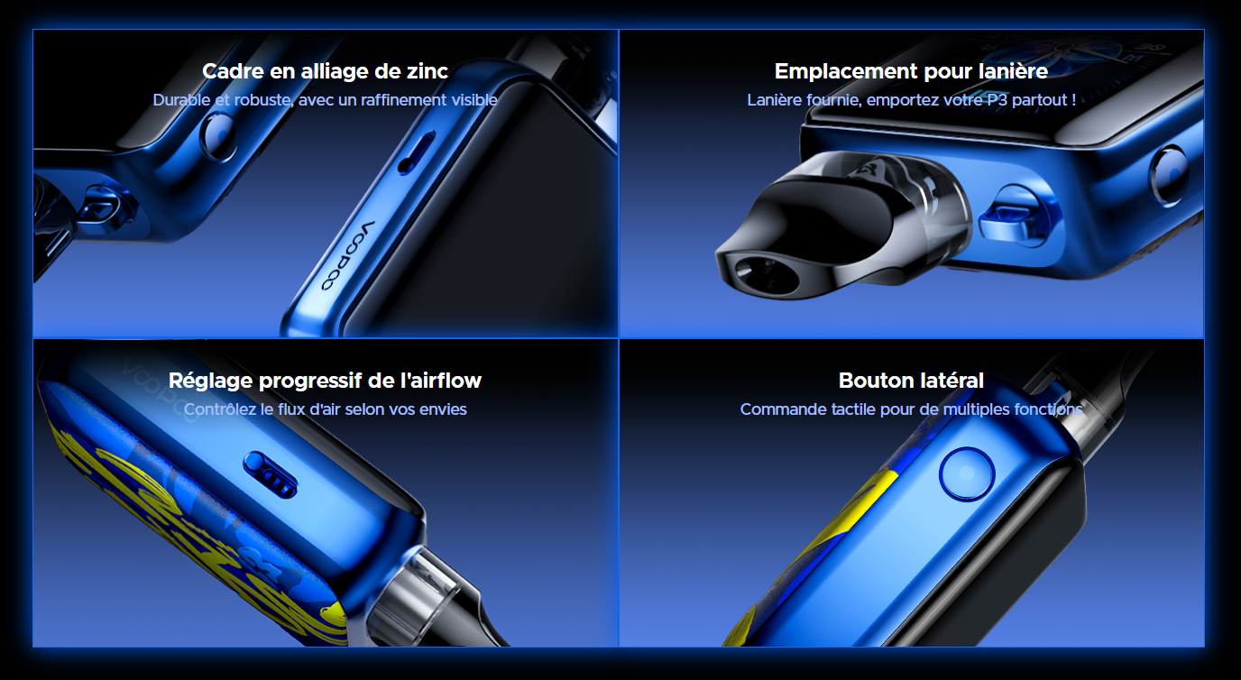 El Argus P3 de Voopoo es la opción perfecta para quienes buscan un pod potente, personalizable, táctil y compacto, capaz de ofrecer una experiencia de vapeo moderna, elegante y de alto rendimiento.