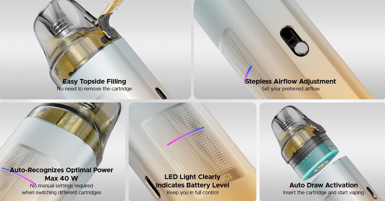 El Kit Vinci S Pod 40W de Voopoo es un pod compacto y potente con batería integrada de 2000 mAh y carga USB-C, ideal para el vapeo diario. Su chipset alcanza hasta 40W y ajusta automáticamente la potencia según la resistencia, además de incluir modo auto-draw.